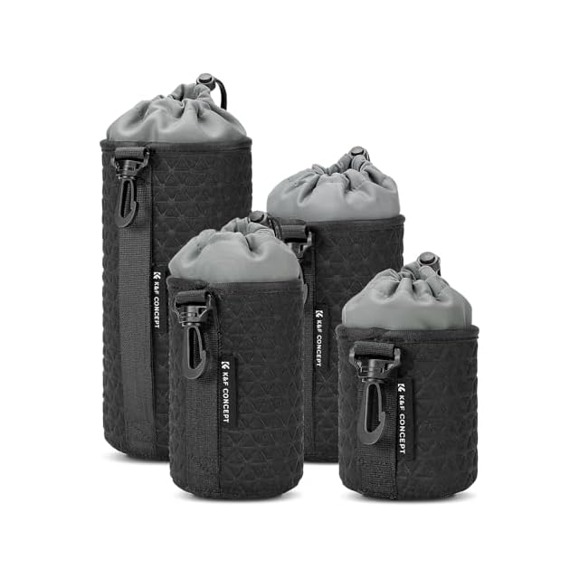K&F Concept カメラ レンズケース 4個セット レンズポーチ 一眼レフレンズケース レンズ保護用ポーチ ソフト一眼レフ 防水 耐衝撃 持ち歩き 便利 収納 Sony Canon Nikon Pentax Olympus Panasonicなどのデジタル一眼レフカメラレンズ対応
