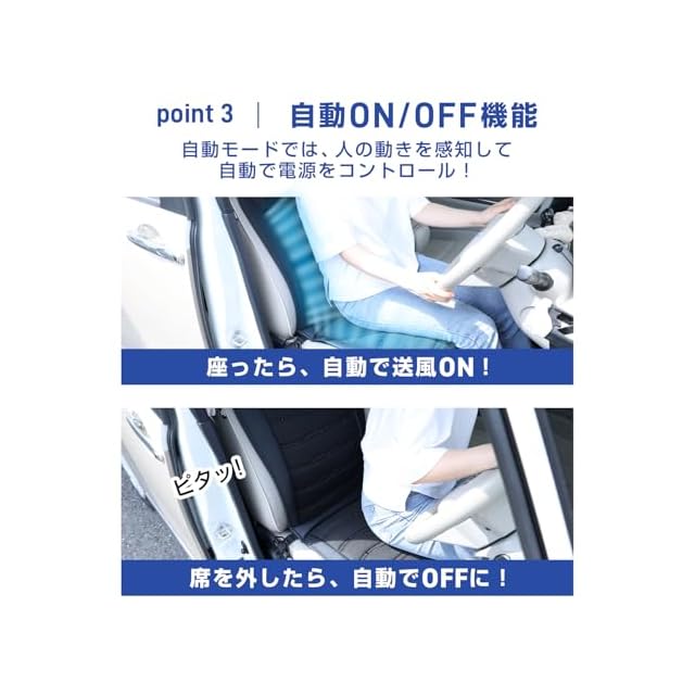 【サイズ】43×132cm【素材】PVC、メッシュ【仕様】入力:12V、ファン:2個、自動送風/停止機能あり(席を離れると自動的に送風停止する機能)、送風2段階