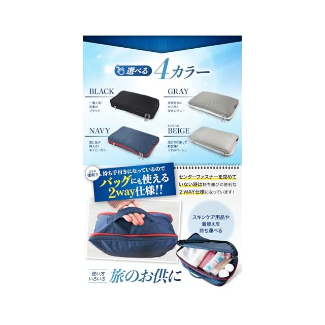 商品名:【じゃらん掲載】LIXIA 旅行用圧縮袋 YKK 圧縮袋 旅行 2Way スペース節約 YKKダブルファスナー トラベルポーチ (M, ネイビー)