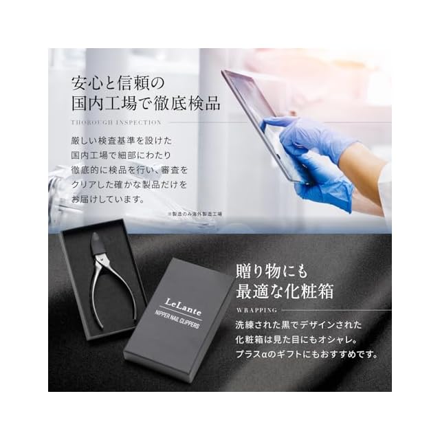 【お客様のお声♪】LeLante(レランテ)のニッパー爪切りをご使用いただいたお客様から喜びの声が届いております!「スパッと切れて感動した!」「悩みだった巻き爪のお手入れが楽になった!」」「やっと切りやすい爪切りに出会えた!」一般的な爪切りとは全く違う使い心地のニッパー爪切りです!是非一度この使い心地をご体験ください♪※こちらの商品は足の爪用です。手の爪には「LeLante 爪切り(ガンメタプレミアムブラック)」または「LeLante 電動爪切り」をおすすめしております。